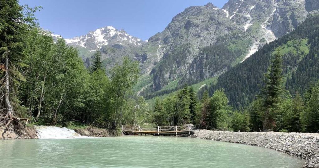 Prejazd cez sedlo Ugyr (1923 m) a ďalej cez lyžiarske stredisko Tetnuldi až do odľahlej dedinky Adiši (27 km / ↑1050 m/asfalt/šotolina/terén); alternatívne je možné zvoliť pohodlnejší variant s podobným prevýšením monumentálnym údolím nahor proti prúdu rieky Adišaly.