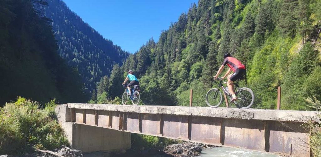 Na bicykli proti prúdu rieky Mestiachala pod ľadovec Chalaadi na ruskej hranici (25 km) či lanovkou na hrebeň Zuruldi (2250 m) a niektorým z trailov späť do Mestie; popoludní prehliadka obrannej veže a tradičného svanského domu rodiny Ratiani.