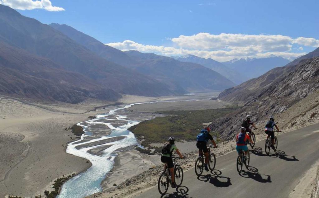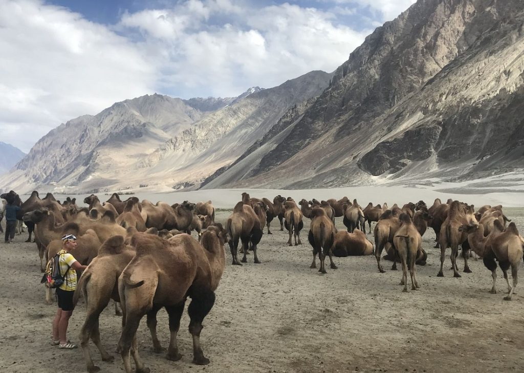 Dokončenie zjazdu zo sedla Khardung La (25 km/ ↑ 100 m/ asfalt); cestou majestátne výhľady na ľadovcové údolie rieky Shyok; zatáborenie v raftovej základni Khalsar na brehu rieky (3160 m); popoludní výlet busom údolím rieky Shyok cez dedinku Diskit s mohutnou gompou až do Hundaru, kde môžeme pozorovať polodivoké ťavy dvojhrbé v piesočných dunách, záujemcovia môžu čiastočne na bicykli.
