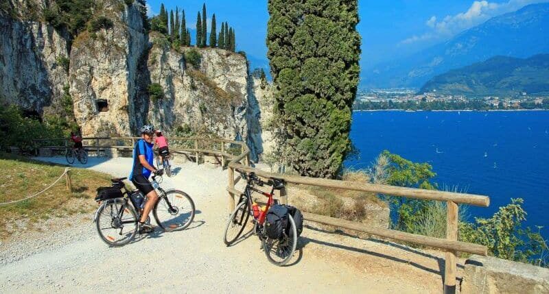 Oblasť okolo jazera Lago di Garda v severnom Taliansku je snáď rovnako nadšene navštevovaná, ako prímorské letoviská. Navyše je to raj pre cykloturistiku. Jednak je tu celý rad cyklotrás po zapadnutých cestičkách v podhorí Dolomitov, ale hlavne samostatná, desiatky kilometrov dlhá cyklotrasa v romantickom údolí rieky Adige. Cyklotrasa je tu lemovaná sady, vinicami a strmými vápencovými stenami a prechádza malebnými dedinkami a mestečkami so stredovekými hradmi. Po výletoch navyše môžeme využiť odpočinok pri vonkajšom hotelovom bazéne. Príjemná stredomorská klíma, voľne prístupné pláže na brehu jazera, krčmičky s výbornou talianskou kuchyňou a skvelými vínami – to je recept na báječnú cyklodovolenku v oblasti Lago di Garda.